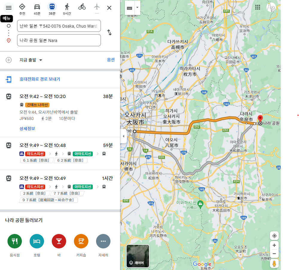 나라역은 나라역이있고 긴테쓰나라역이있습니다. 긴테쓰나라역으로 가야지 나라공원에 더 빨리 도착을 할수있습니다